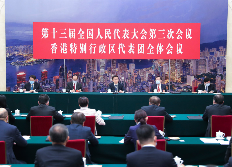 5月24日,中共中央政治局常委、国务院副总理韩正参加十三届全国人大三次会议香港代表团的审议。新华社记者 姚大伟 摄