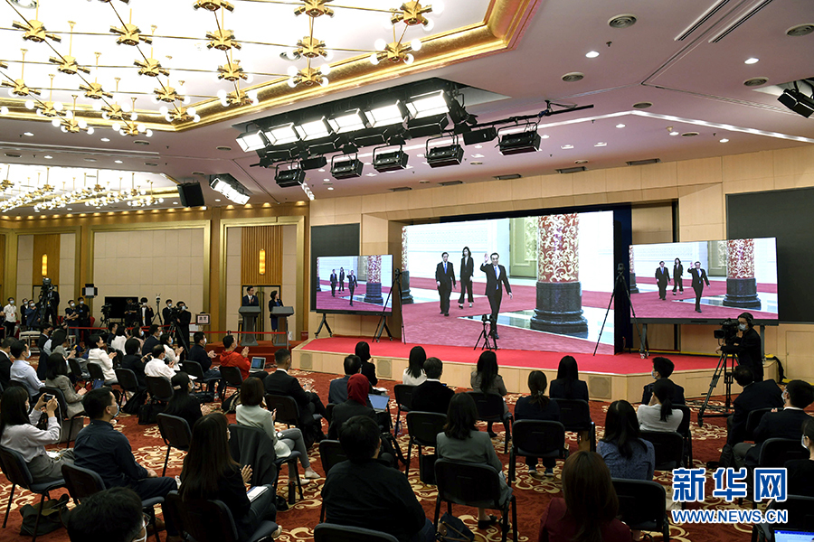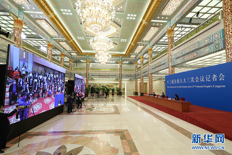 5月28日,国务院总理李克强在北京人民大会堂出席记者会并回答中外记者提问。这是记者在梅地亚中心多功能厅采访。 新华社记者 刘金海 摄