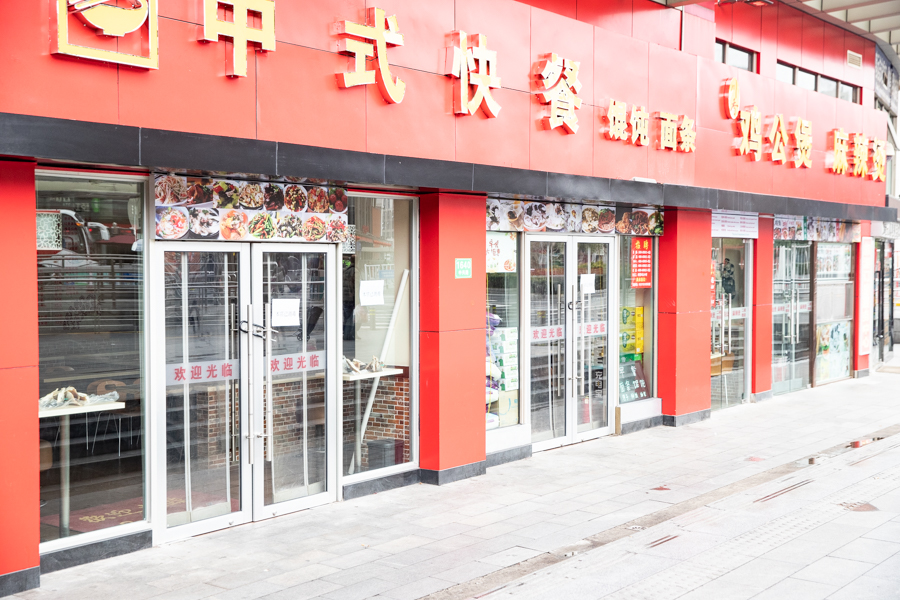 常年无休的车站餐饮店均关闭大门,暂停营业。新华网吴恺 摄