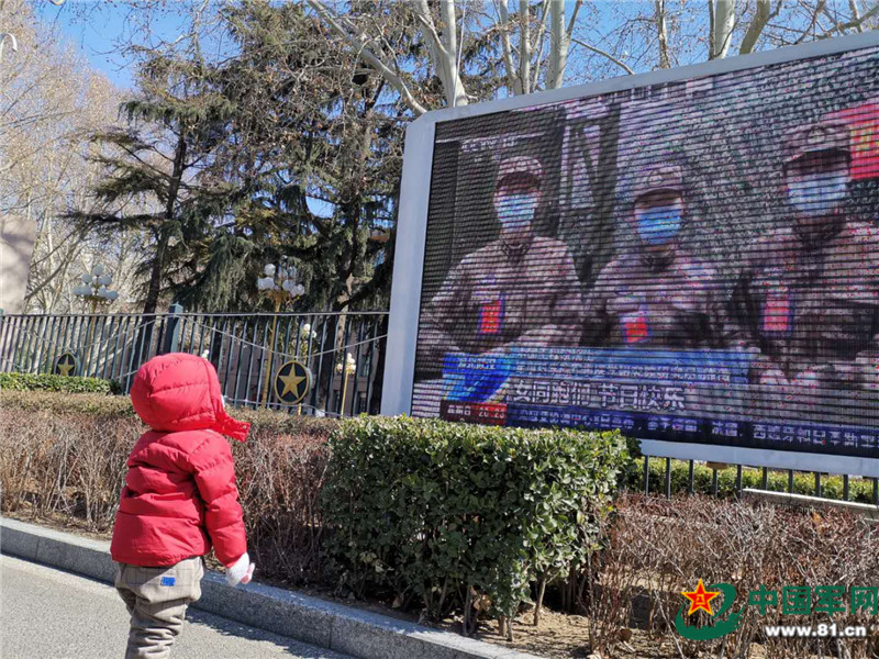 芊芊很想念妈妈。那天,芊芊拉着李亮的手在军事医学研究院办公区门口等了很久,因为那里的大屏幕上,会滚动播放武汉战“疫”官兵的视频画面。