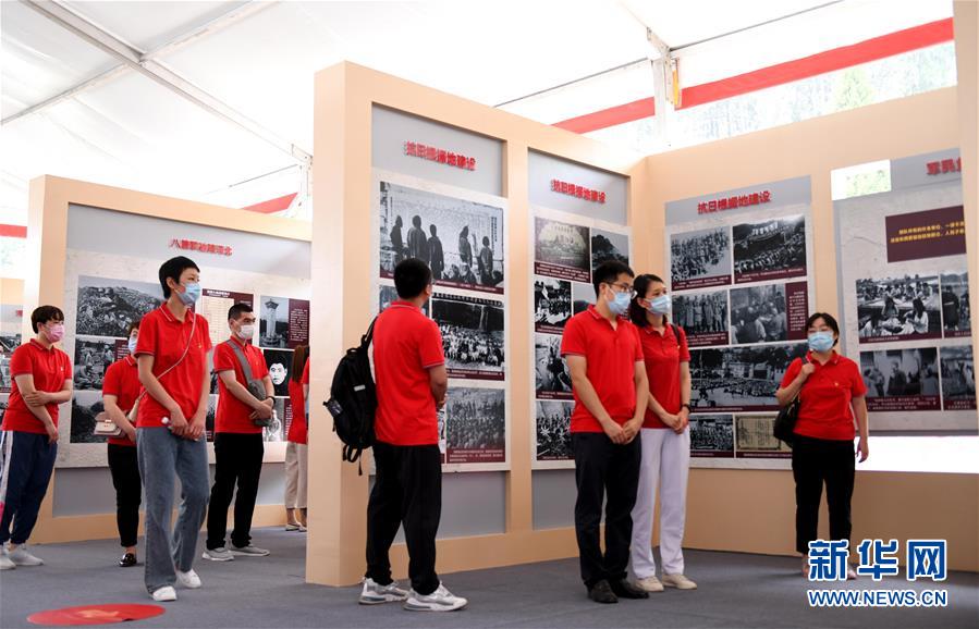 6月28日,在河北省石家庄市平山县西柏坡,石家庄市人民医院援鄂抗疫新党员参观展览。(陈其保 摄)