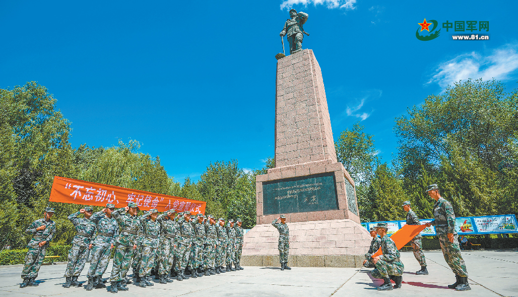 6月上旬,新疆军区某团开展“不忘初心、牢记使命”入党宣誓仪式,激励新党员立足岗位建功。(师 创/摄)