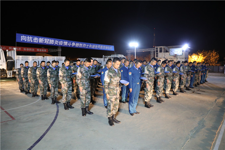 苏丹当地时间4月4日,正在苏丹达尔富尔执行维和任务的中国第3批维和直升机分队,在法希尔超级营地与国内同步深切哀悼新冠肺炎疫情牺牲烈士和逝世同胞。