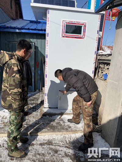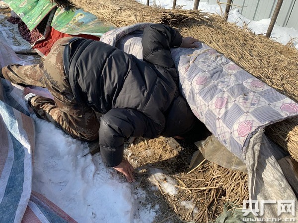 杨立山冬季到养蜂村民家查看蜂箱(中央广播电视总台央广记者 苑竞玮 摄)