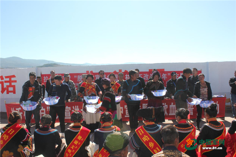 昭觉县人武部组织开展移风易俗活动,向村民发放生活用品