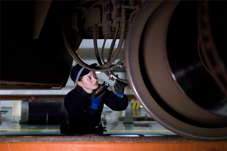 她们的作业分为有电作业和无电作业两种状态。有电作业主要是对高铁车载设备进行试验,检查机柜内设备显示灯是否正常,机柜是否有异物、异味等;无电作业主要是对高铁动车组车底的速度传感器、应答器、轨道信息接收天线线圈进行防松脱检查等。