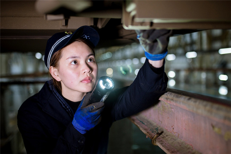 “我们这个岗位最重要的是细心,车底螺丝是否移位、电缆接头是否松动,不敢放过一个细节,比如说动车底盘的天线,遇到北方冰冻雨雪天气时,易被冰块砸出裂纹,如没及时发现,将会对列车信息传输造成直接影响。”向念说。