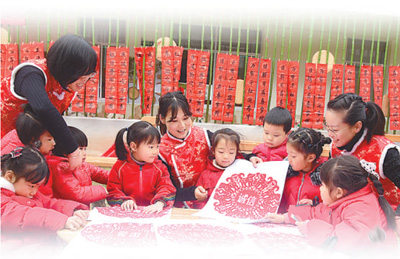 浙江建德市下涯中心幼儿园开展“快乐年俗 幸福童年”活动。宁文武摄(人民视觉)