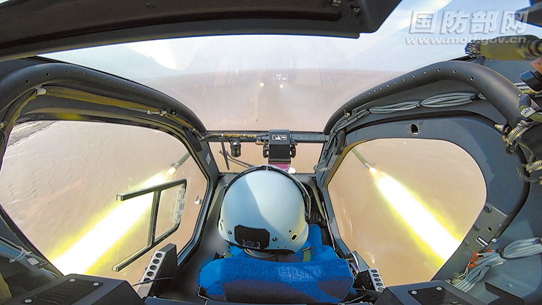 该旅飞行员发射火箭弹对目标实施火力打击。向旭摄