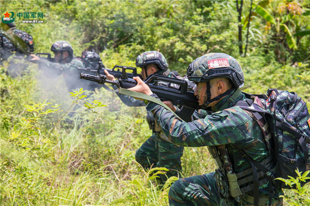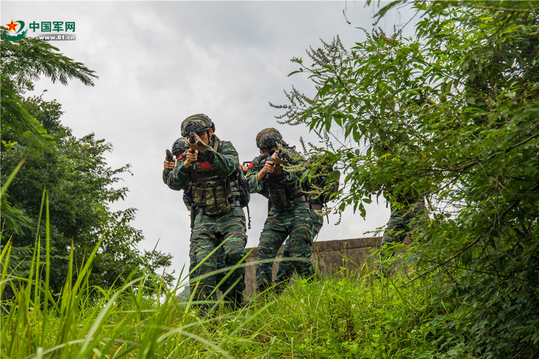 7月20日,武警广西总队来宾支队组织特战队员在某陌生山林地开展捕歼战斗,在恶劣情况和复杂环境下,锤炼特战队员的心理素质和小组协同能力,为下一步任务奠定坚实基础。