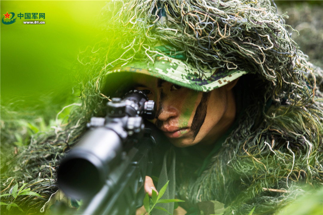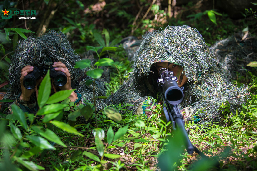 狙击手隐蔽观察。