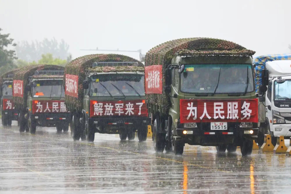 人民子弟兵闻“汛”而动,第71集团军“铁骨硬旅”炮兵营紧急驰援安徽省二郎口镇。