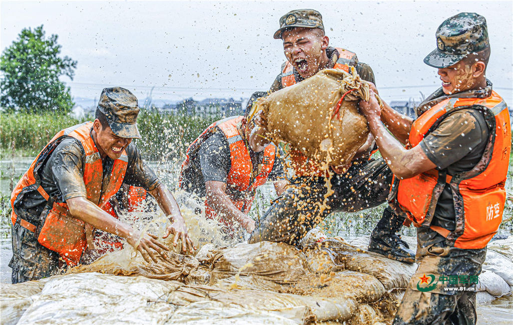 7月以来,江西各地多次遭受暴雨袭击,人民军队火速集结,驰援抗洪一线。子弟兵布沙袋、垒土石、筑子堤、填缺口。