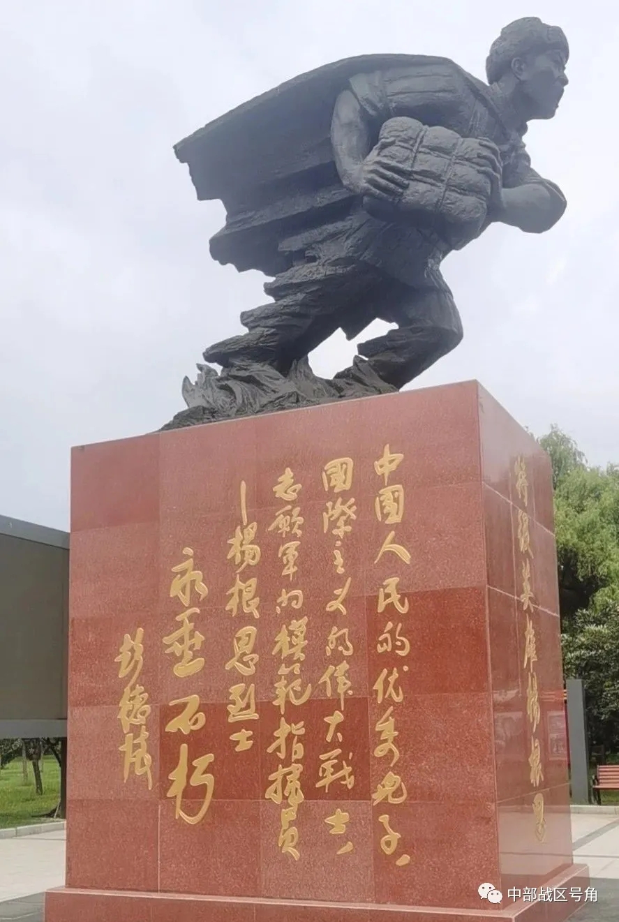走进该旅杨根思广场,一座高大挺拔的雕塑引人入胜,雕塑一侧清晰镌刻着彭德怀元帅的手迹“中国人民的优秀儿子、国际主义的伟大战士、志愿军的模范指挥员——杨根思烈士永垂不朽!”