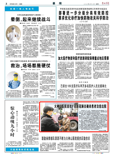 解放军报武汉2月13日电 记者赖瑜鸿、通讯员孙先鹏报道:2月13日下午,经过火神山医院医护人员科学有效的救治,7名新冠肺炎患者康复出院。这是火神山医院首批确诊患者治愈出院。