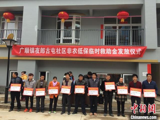 资料图:贵州省长顺县广顺镇易地扶贫搬迁贫困户一次性临时救助金发放仪式。 长顺县民政局供图