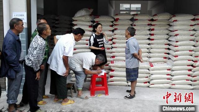 资料图:贵州省天柱县民政局给困难民众发放救助粮。 天柱县民政局供图