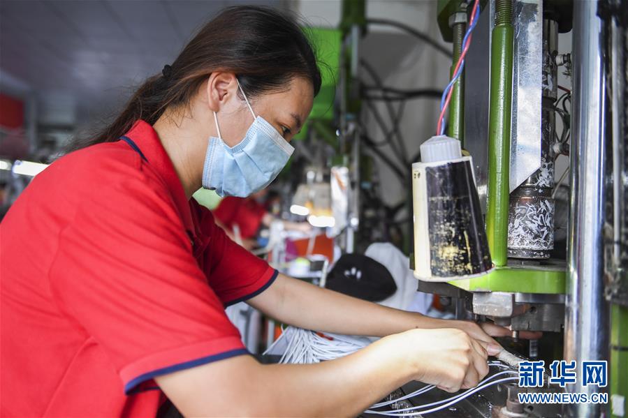 工人在广西武宣县一家生产电子产品的就业扶贫车间内工作(6月18日摄)。