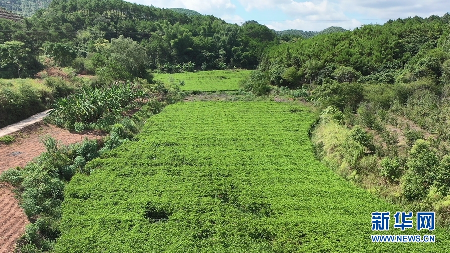 无人机航拍宁明县峙浪乡洞浪百香果基地。新华网 刘君 摄