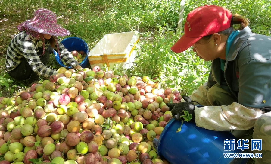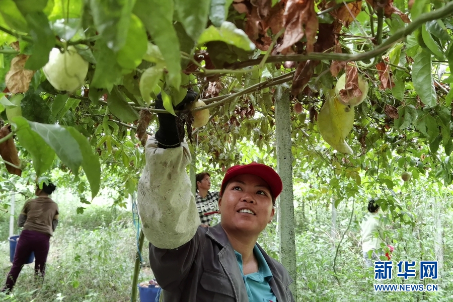在洞浪百香果基地务工的村民正在采摘百香果。新华网 刘君 摄