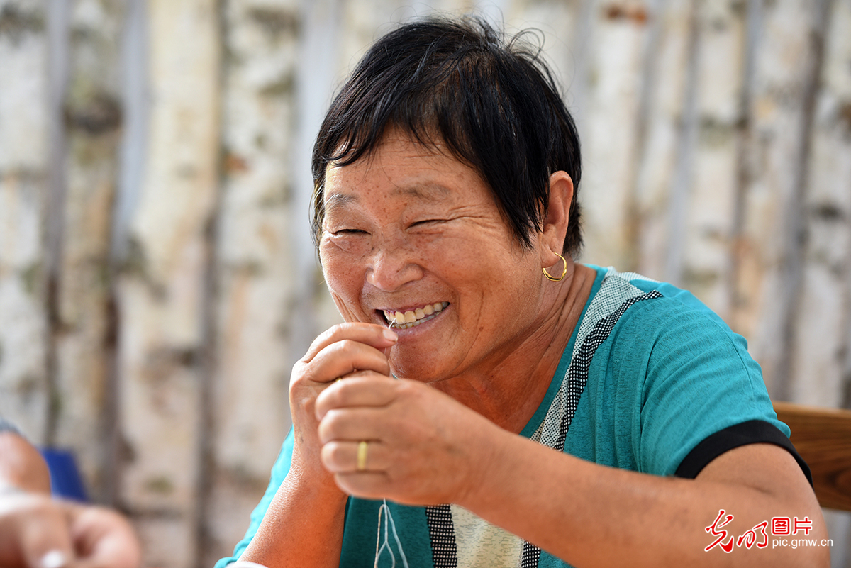 66岁的张翠英也是制作太阳花的“熟练工”。“在这里,一边聊着天儿,一边就把活儿干了,把钱挣了,多好!”她告诉记者,政府给村里盖了新房子,供暖用水免费;交通便利,孩子上学、老人看病都方便了。“我们现在身体健康,啥也不缺,这就是小康生活。”(潘迪摄/光明图片)