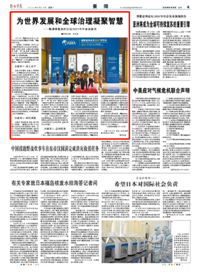 18日上午,论坛发布《亚洲经济前景及一体化进程》和《可持续发展的亚洲与世界》两份旗舰报告,其中不仅对促进亚洲经济发展和经济一体化进行思考,还分析了关乎亚洲和世界可持续发展的重大议题。中国不仅迅速控制住了疫情,及时重启经济,还胜利完成了脱贫攻坚任务、顺利开启“十四五”规划实施等工作,因此中国经验和中国智慧受到各方关注。