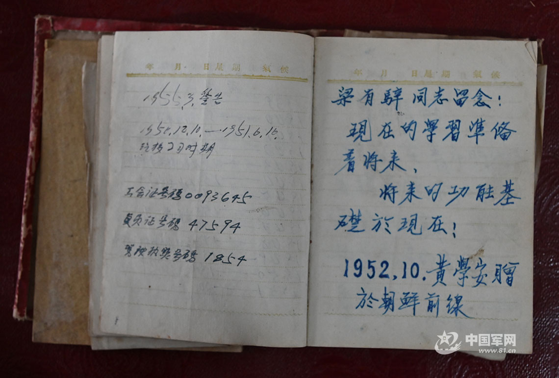 梁有驿参加抗美援朝战争期间,朝鲜前线的战友写给他的寄语