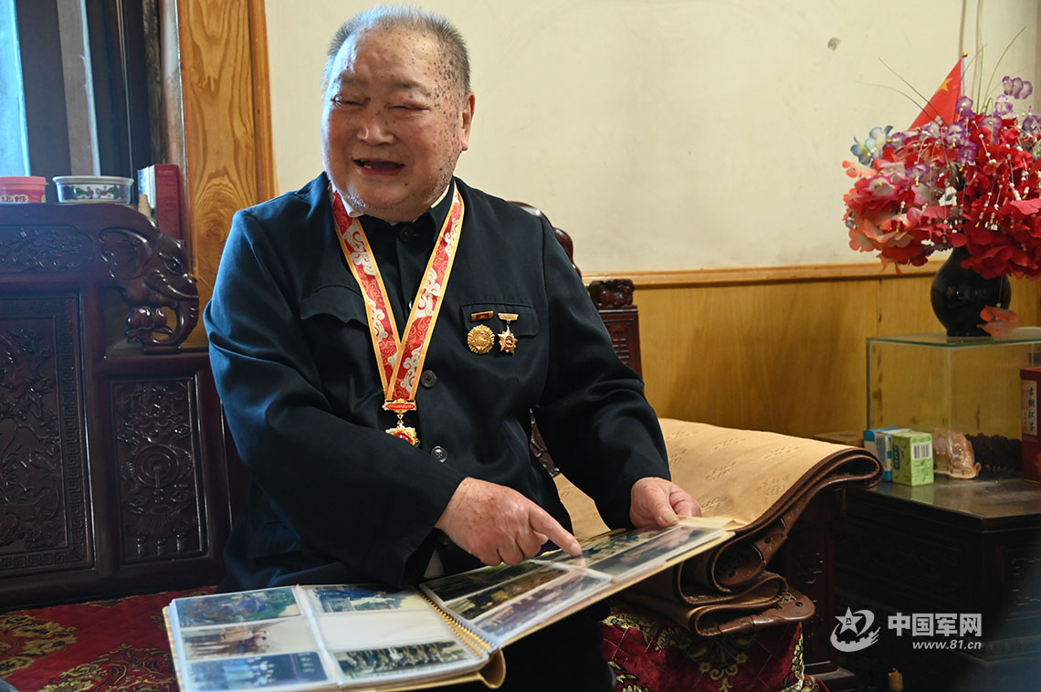 吴子午翻阅自己年轻时的照片。李珂 摄