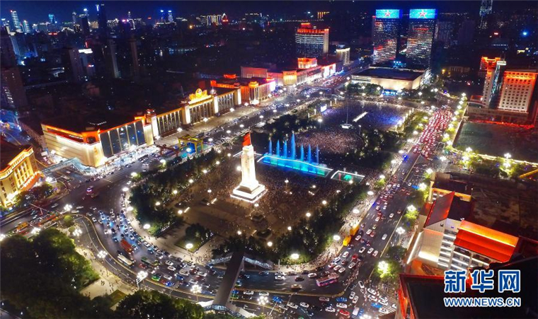 2017年7月30日拍摄的南昌八一广场夜景。新华社记者 万象 摄
