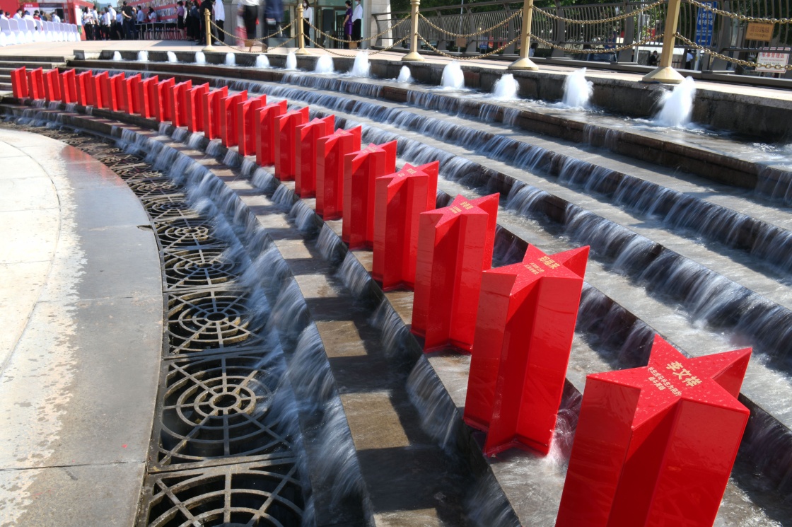 这是北京中华世纪坛圣火广场上的五星灯柱(5月30日摄)。新华社记者 金良快 摄