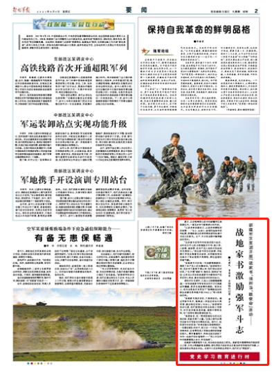 “战地家书是历史的,又是现实的。通过写家书形式,能够进一步坚定官兵扎根军营、建功岗位的信心与决心。”该团领导告诉记者,他们鼓励驻训官兵给家人写家书,针对驻训地信息闭塞、通联不便等实际,专门安排车辆定期寄收家书。