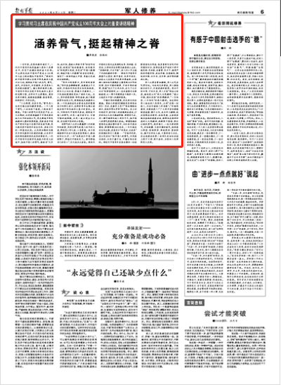 军人之骨当骨如精钢,军人之气当气贯长虹。刘伯承元帅曾说,军人要做铁打的汉子,不做泥捏的菩萨。因为宁折不弯、宁死不屈,军人才有“明知山有虎,偏向虎山行”的大无畏精神,“逢山开路,遇水架桥”的拼搏精神,“一不怕苦、二不怕死”的战斗精神。由这样的军人组成的人民军队,必将“压倒一切敌人,而决不被敌人所屈服”。“不经寒霜苦,安能香袭人?”广大青年官兵要想傲雪凌霜、横刀立马,成为淬火精钢,就应坚持走在前列、标准更高,主动投身练兵备战的滚滚洪流,保持和发扬革命者的大无畏精神,砥砺敢于亮剑、敢打必胜的勇气,赴汤蹈火、一往无前的胆气,所向披靡、无坚不摧的锐气,做到高山敢登、险滩敢涉、强敌敢拼、重担敢扛,踏平坎坷成大道,斗罢艰险又出发,在全面建成世界一流军队的如虹征途上敢于斗争、敢于胜利,为党和人民争取更大光荣。