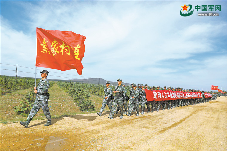 第81集团军某合成旅官兵徒步行军展开主题党日活动。詹奕坤 摄