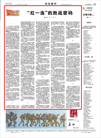 快板《备战强军》一文旁边则小注:红色的连队,红色的战旗,锻造红军传人。