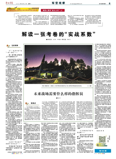 他解释说,过去考核那些基础课目也没错,是导弹旅长应该具备的基本技能,却并非是旅指挥员的核心能力。如果考场剥离了旅长的“战场角色”,也就脱离了实战的需要。