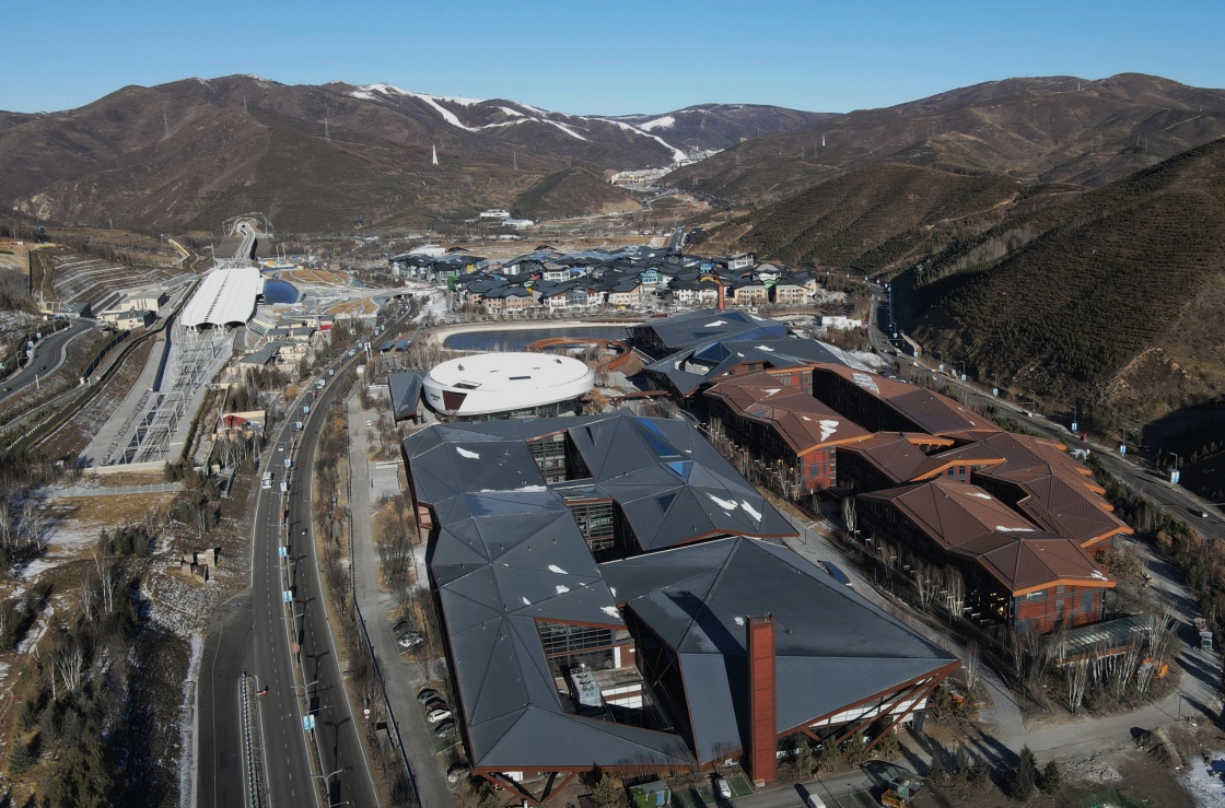 在崇礼冬奥核心区的古杨树场馆群中,一柄“如意”雄踞雪原;在这个国家跳台滑雪中心面前的两侧山谷,国家越野滑雪中心和国家冬季两项中心坐落其间;“冰玉环”将三者缀珠成串。不远处,云顶场馆群隔山相望。