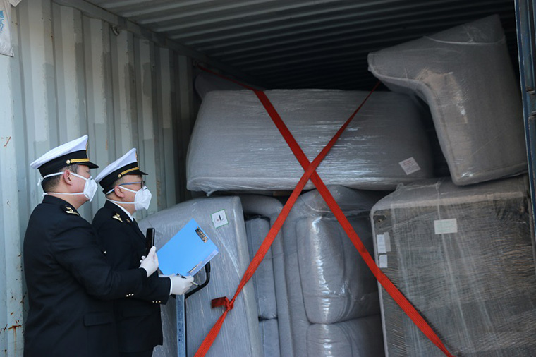 关员对暂时进境奥运物资开展中期监管作业。海关总署供图
