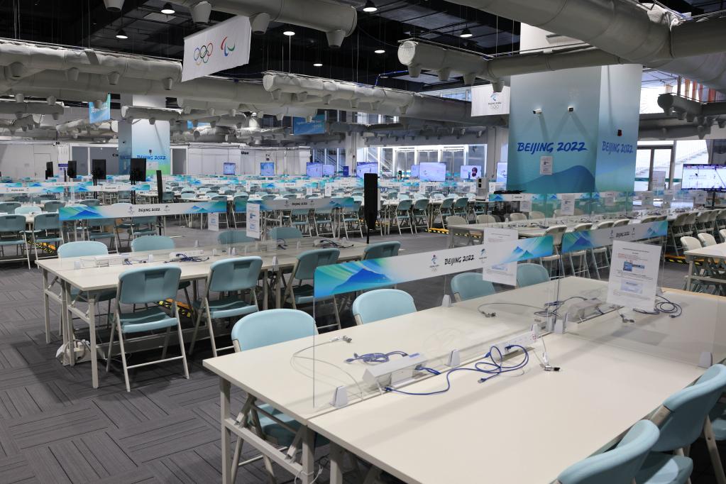 图为1月10日在主媒体中心内拍摄的媒体工作间。新华社记者 徐子鉴 摄