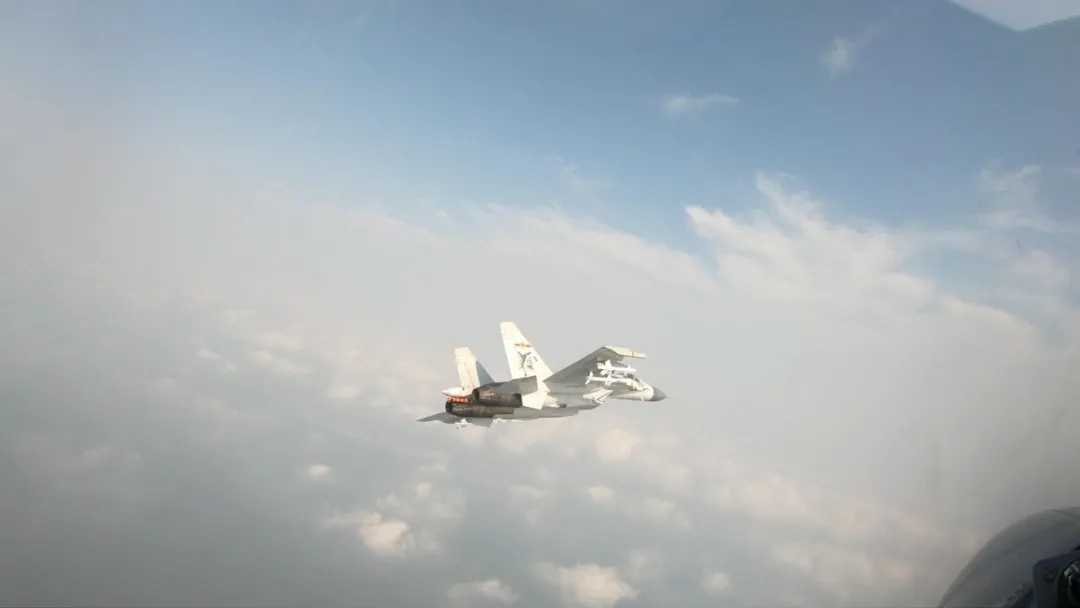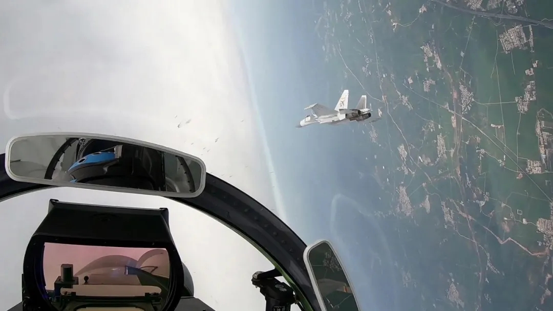 △正在进行的是一场舰载机战术编队空中对抗训练,红蓝双方都是飞行学员,像这样的对抗训练在这个基地已经成为常态。