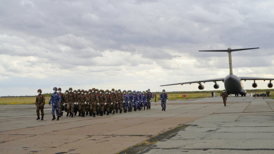 参加“和平使命-2021”上海合作组织联合反恐军事演习的中方参演部队,经过铁路、空中多梯队分批次投送,于10日全部抵达俄罗斯奥伦堡州东古兹靶场。新华社发(刘丹 摄)
