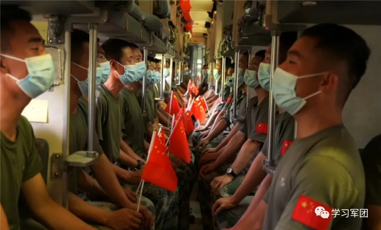 官兵们在列车上齐唱《强军战歌》。刘丹摄
