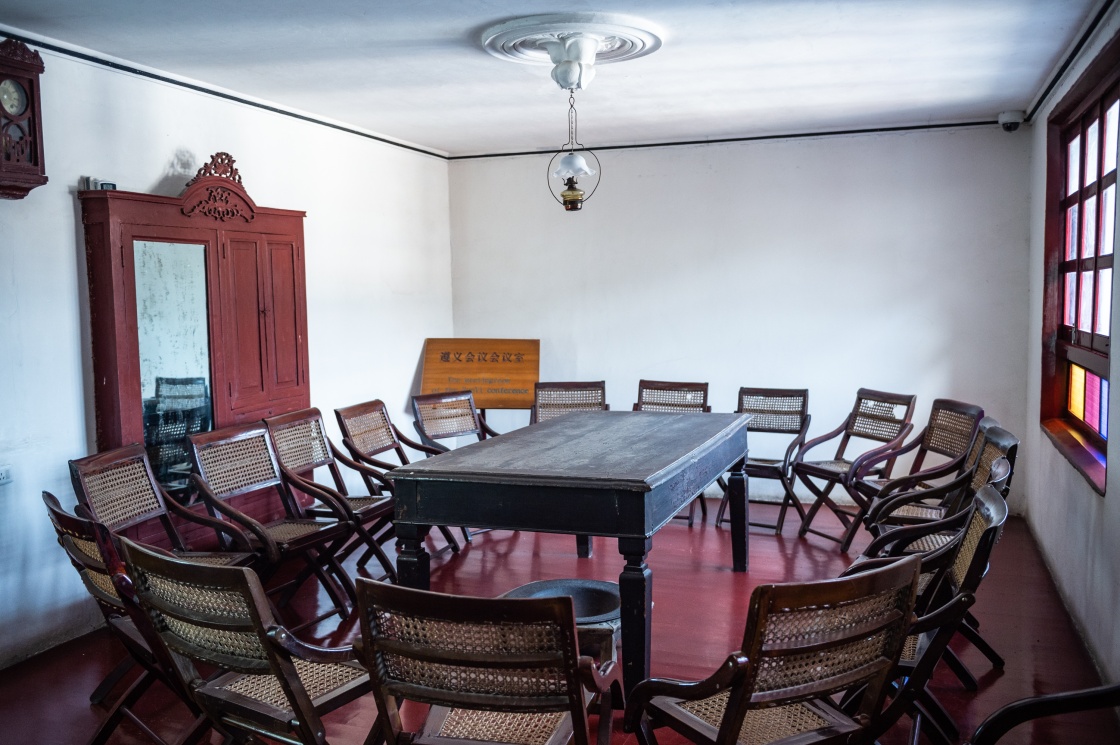 1935年1月15日至17日,中共中央政治局在此召开扩大会议,毛泽东等革命家围着这张桌子,结束了“左”倾教条主义错误在中央的统治,拨正了革命的航向。