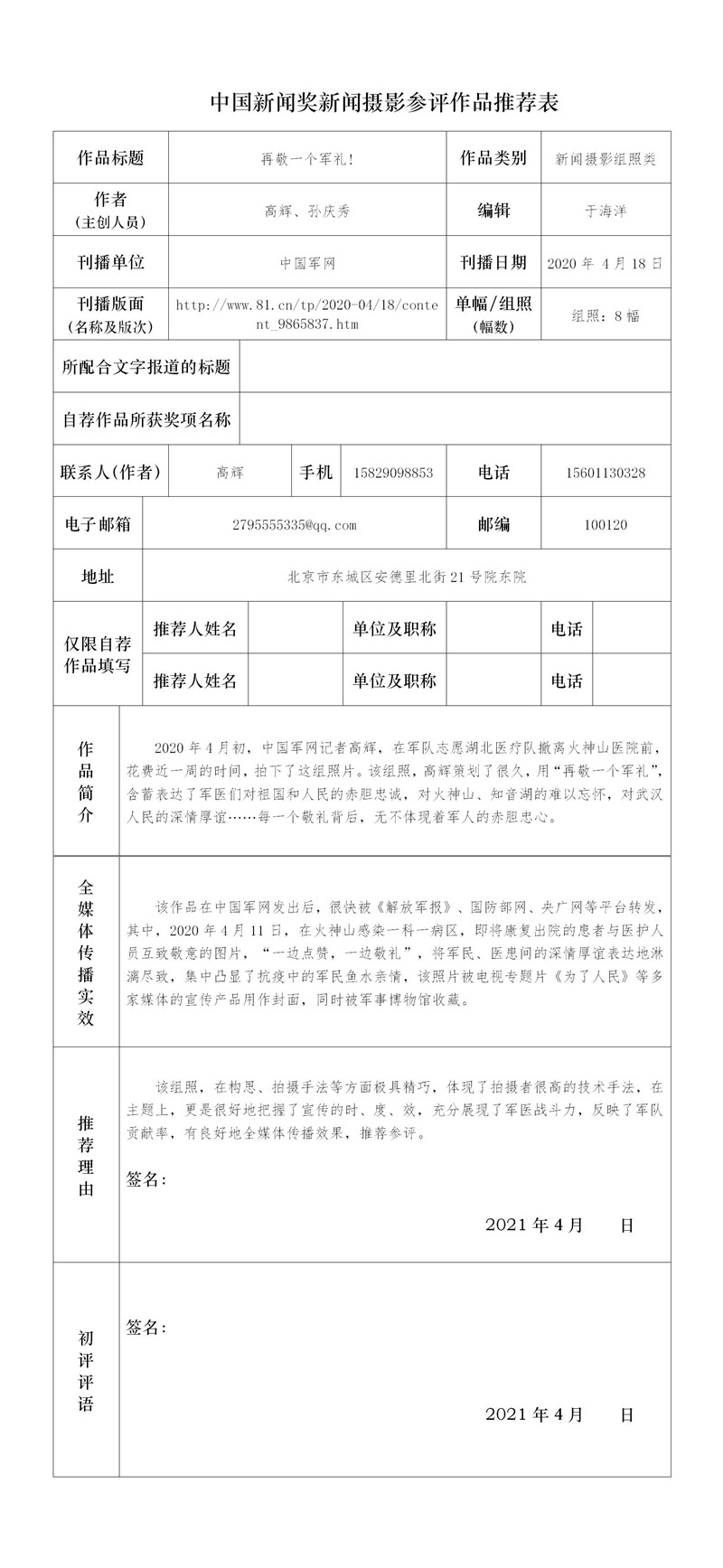 解放军新闻传播中心2021年中国新闻奖推荐作品公示