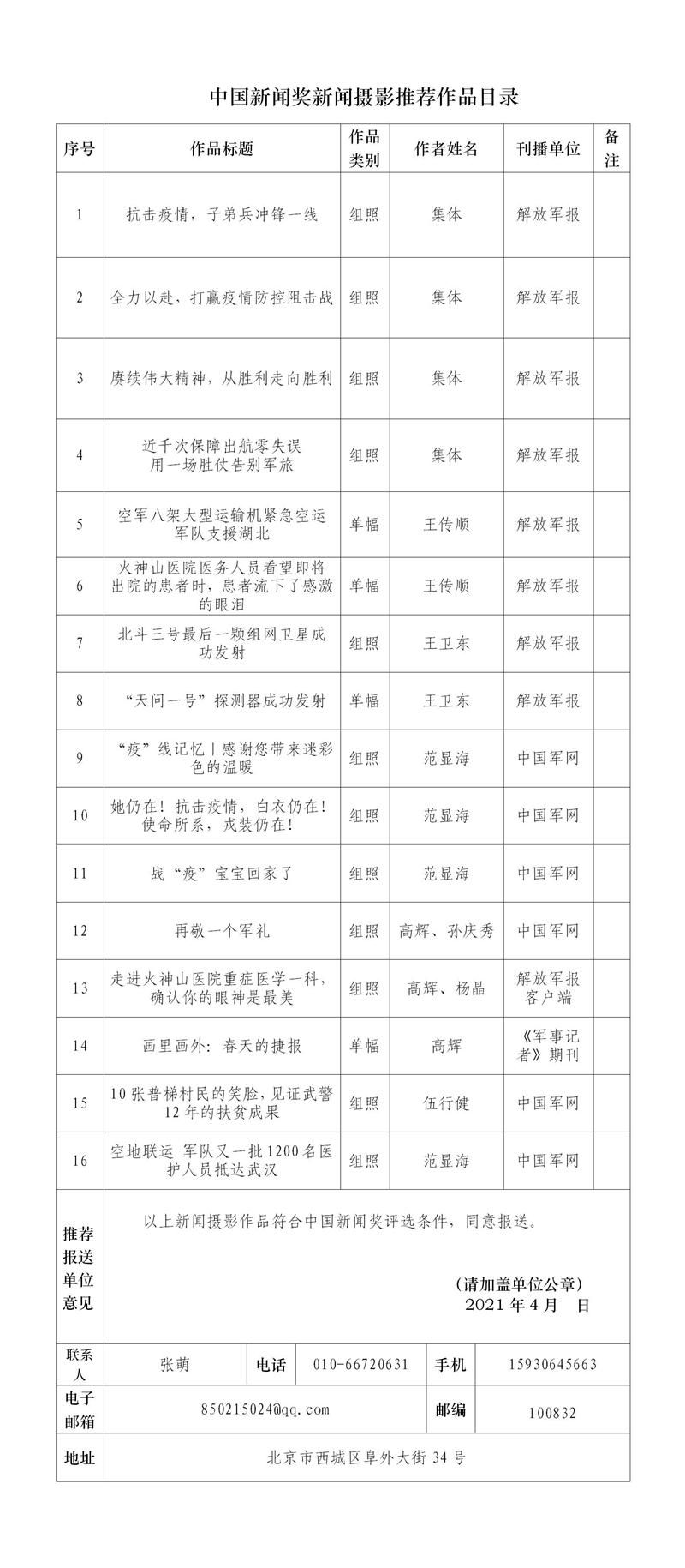 解放军新闻传播中心2021年中国新闻奖推荐作品公示