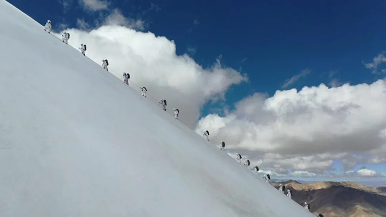 △近年来,这个旅每年在海拔4500米以上野外驻训达5个多月,官兵把“白云山团”精神融入血脉,趟冰河、攀冰壁、越冰川。
