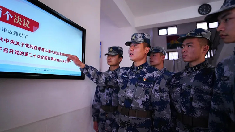 △在空军某雷达旅,一场“初心写在行动中,使命落在战位上”的讨论交流,引发了官兵对初心的思考,他们结合部队承担的使命任务学全会精神,谈责任担当。