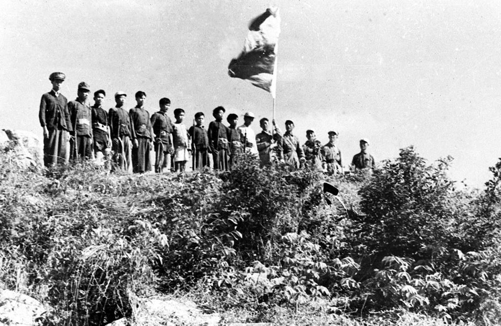 ↑这是1950年我人民解放军和琼崖纵队会师在五指山上(资料照片)。新华社发