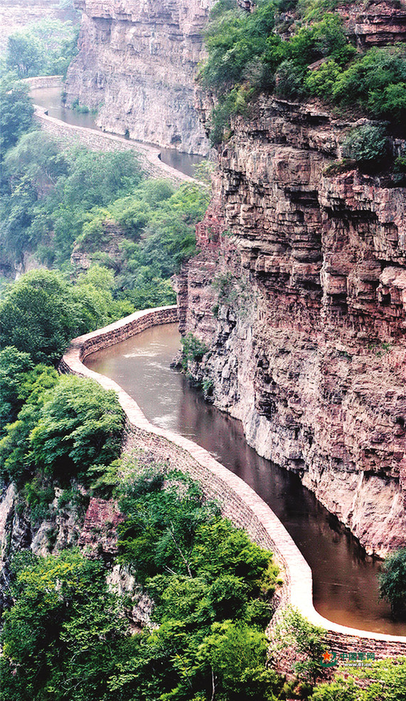 图④:蜿蜒穿行于太行山间的红旗渠总干渠。