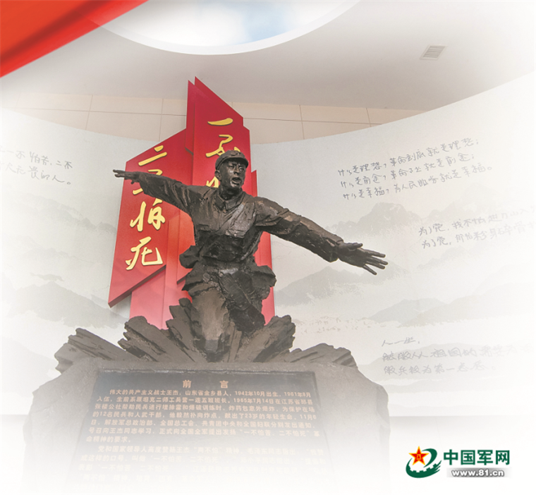 “无论什么时候,‘一不怕苦、二不怕死’的革命精神不能丢。”走进第71集团军某旅“王杰事迹陈列馆”,王杰扑向炸药包的雕塑和“一不怕苦、二不怕死”8个大字映入眼帘,无畏的身姿、坚毅的眼神,正如他当年舍己救人的那个瞬间。