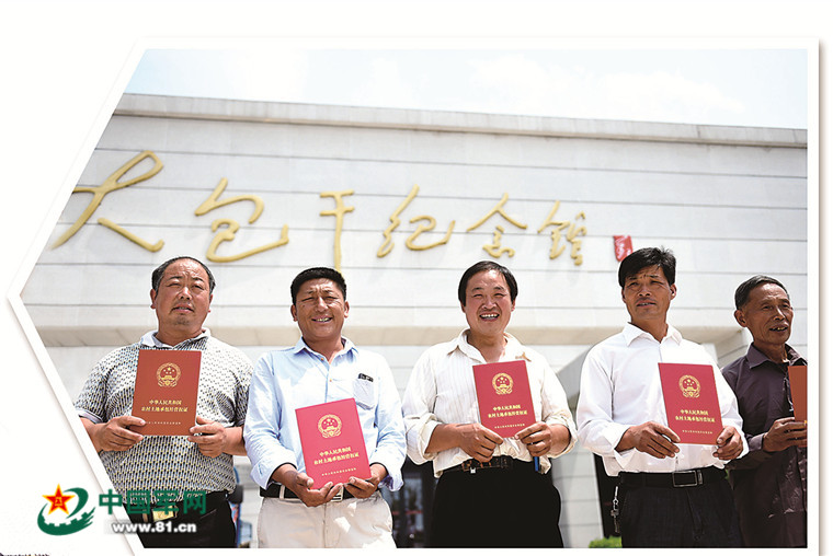 安徽凤阳小岗村农民展示领到的农村土地承包经营权证。